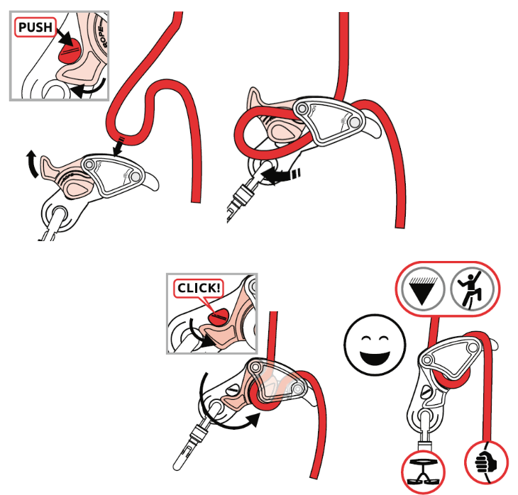 これまで長く販売されてきた「ドゥルイド」から改善された点として、ハーネスにセットしたままロープセットが可能になりました。