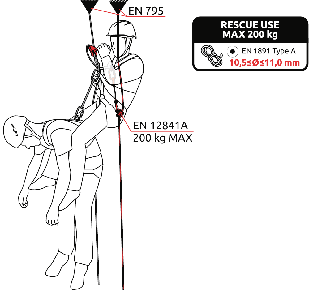 「ドゥルイド」から構造変更したため若干サイズは大きくなったものの、それでも宙づり状態の作業者の緊急レスキュー(熟練者の操作により耐荷重200kgまで)にも対応する本格的なプロフェッショナル用セルフブレーキング下降器としてはきわめて軽量コンパクトな部類になります。