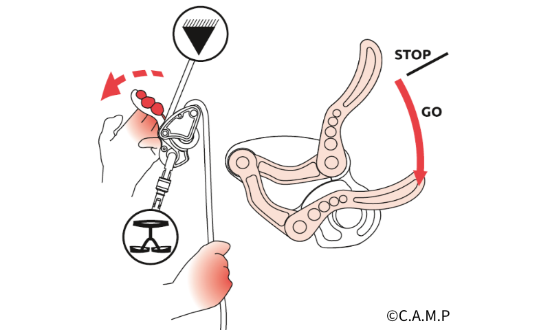 例えば「カンプ ドゥルイドランヤード」に取り付けられているデバイスは、パニック防止機構のない下降器「カンプ ドゥルイド プロ」をベースにしています。