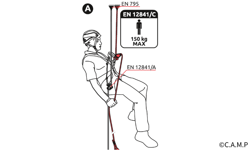 また『EN12841/C(ロープアクセス用下降器)』の認証を取得している製品は、作業者がぶら下がる下降器としても使用できます。