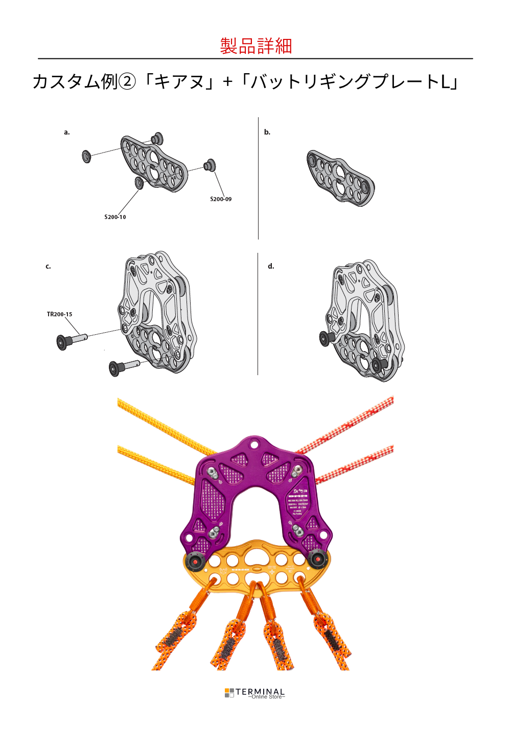 キアヌはハイラインリギング及びレスキューオペレー ションに適した一体型リギングプーリーです。4つのシェーブとクイックリリースピンを組み込んだ極厚プレートはいままで複数のコンポーネントを使用し て構成されたハイラインアッセンブリーよりも軽量で小型です。また、オプションのクイックリリースピ ンを追加することでさらなるリギングオペレーションが可能になります。