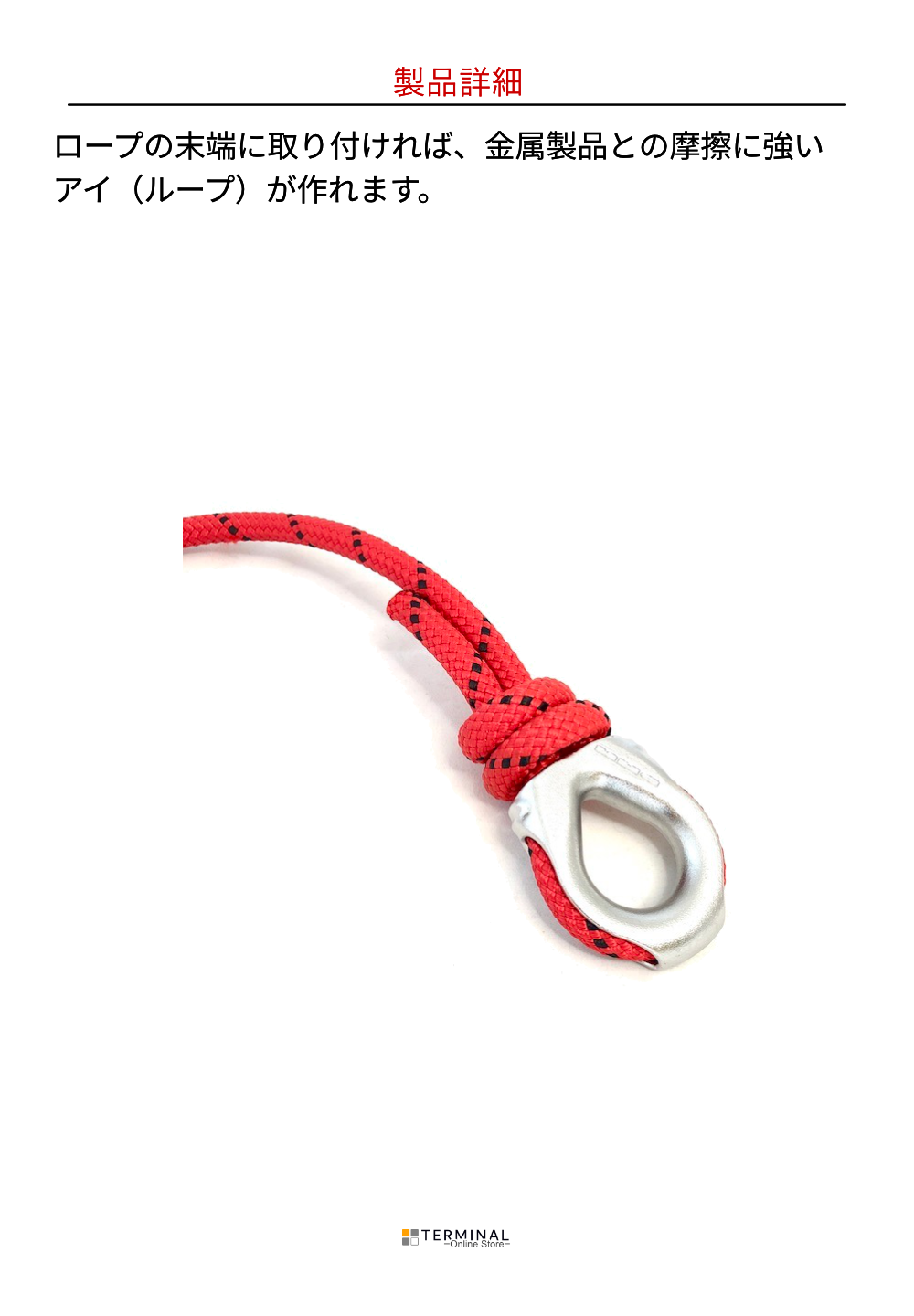 ・裁断したロープやアクセサリーコードを通したのち末端をノットで結んで使用します。スリングのようなループ状に縫製されたものには取付できません。