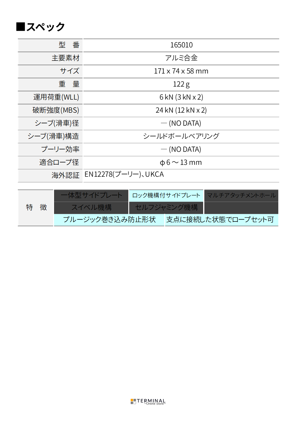 対応ロープ径:6?13mm