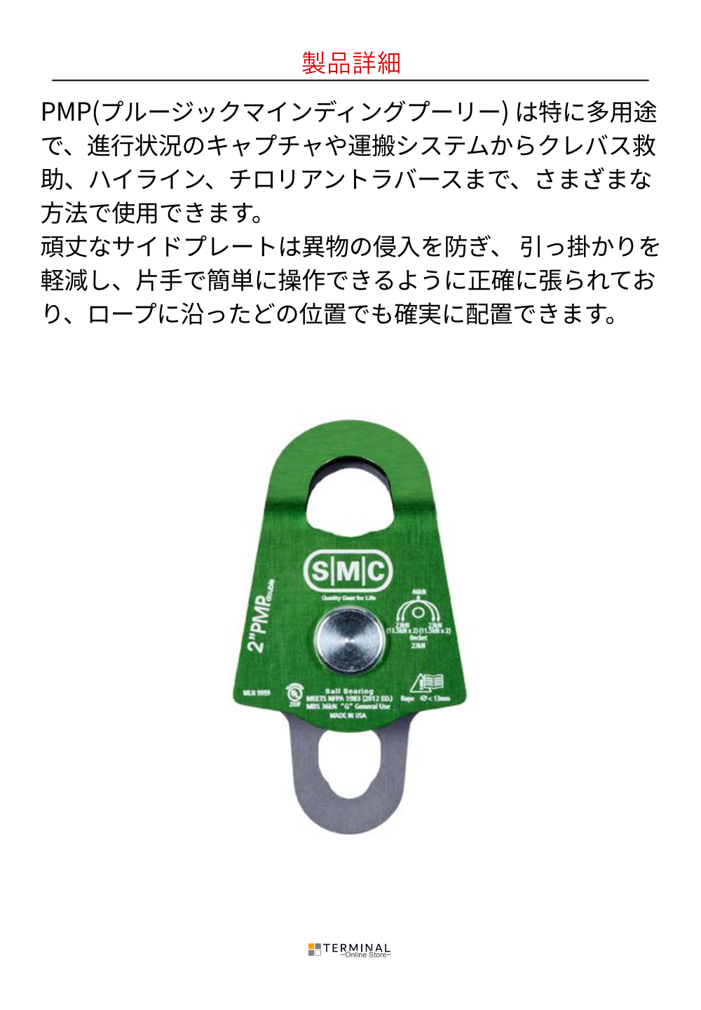 PMP(プルージックマインディングプーリー) は特に多用途で、進行状況のキャプチャや運搬システムからクレバス救助、 ハイライン、 チロリアントラバースまで、さまざまな方法で使用できます。