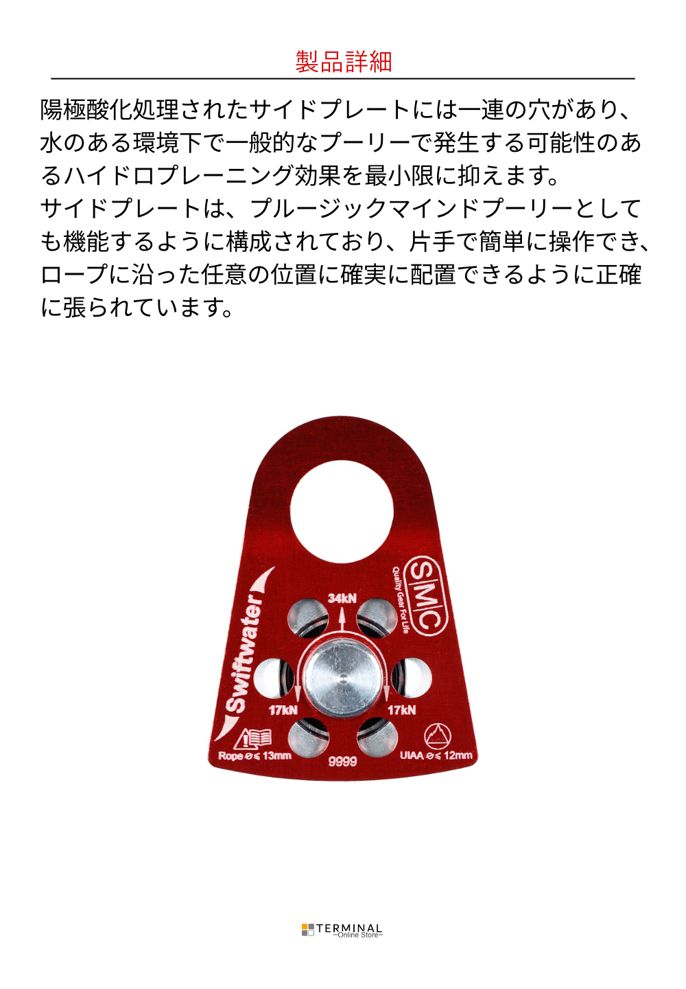 ロープを除いて、滑車はあらゆるシチュエーションでのレスキュー、 荒野や高山の探検で使用される最も重要なコンポーネントの1つであると言えます。 ウォーターレスキュー に見られる独自の要件に注目し、それらのニーズに対応するまったく新しいプーリーを作成しました。 Swiftwater は、サイズと作業負荷の両方においてマイクロ PMPと3インチ PMPの中間に位置し、 手頃な価格の NFPA 中型プーリーを代表します。