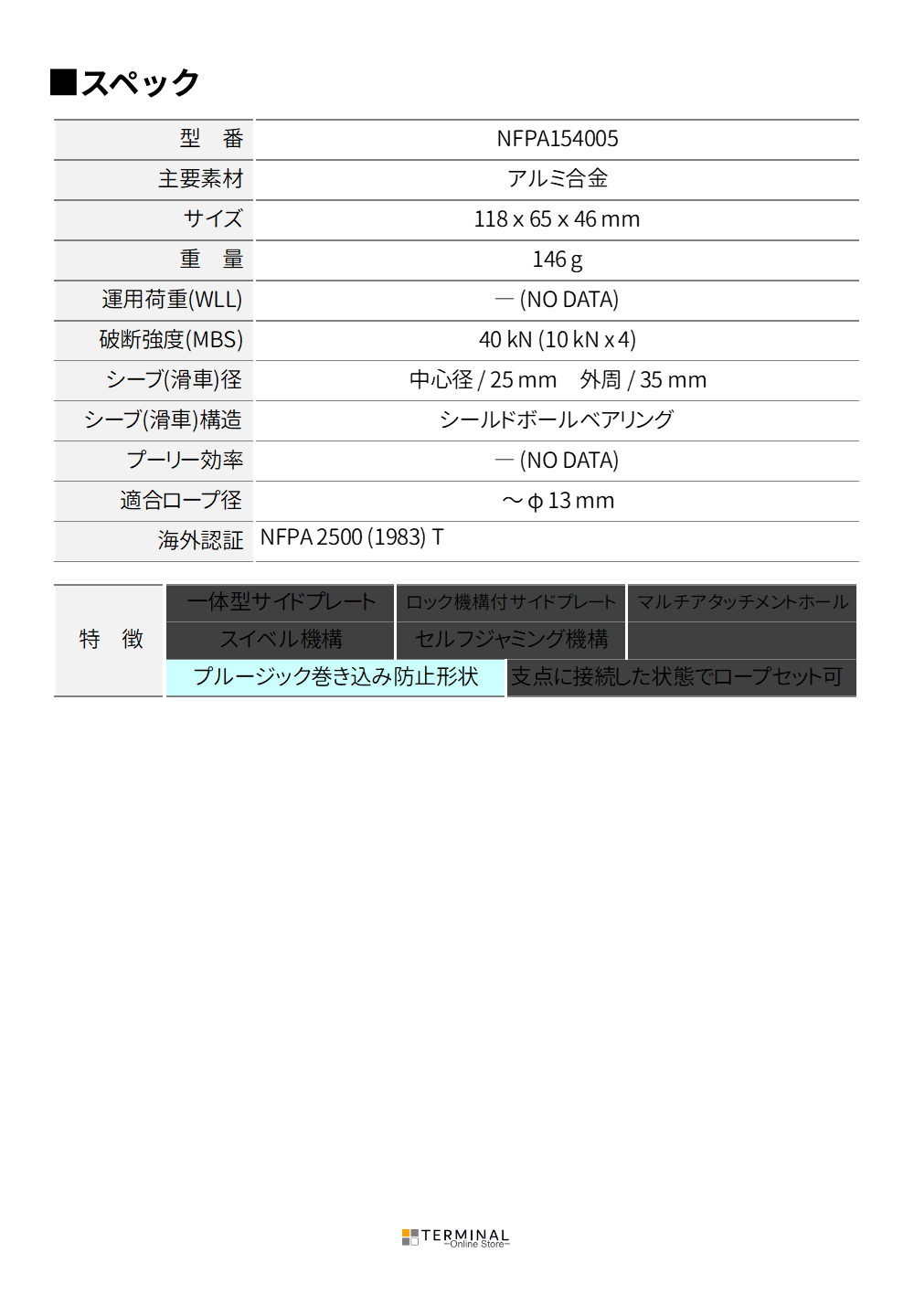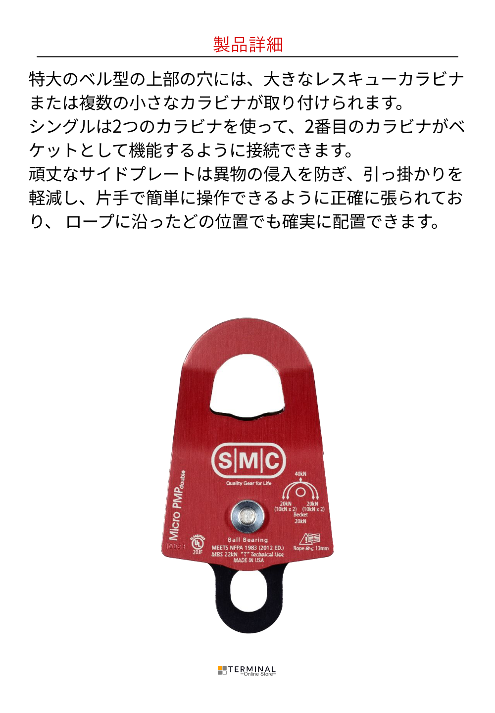 幅広のベース設計によりプルージックヒッチの効果が最大限に発揮され、 独自のサイドプレート形成によりコンパクトなプーリーでより大きなロープを使用できます。 特大のベル型の上部の穴には、大きなレスキューカラビナまたは複数の小さなカラビナが取り付けられます。 シングルは2つのカラビナを使って、2番目のカラビナがベケットとして機能するように接続できます。 頑丈なサイドプレートは異物の侵入を防ぎ、引っ掛かりを軽減し、片手で簡単に操作できるように正確に張られており、 ロープに沿ったどの位置でも確実に配置できます。 シールドボールベアリングは最適な効率を提供し、 ほとんどの複数のコンポーネントシステムに固有の性能低下の抵抗を軽減します。 また、 ニードルベアリングで発生する可能性のある、位置のずれた荷重やギアのねじれによって故障する心配がありません。