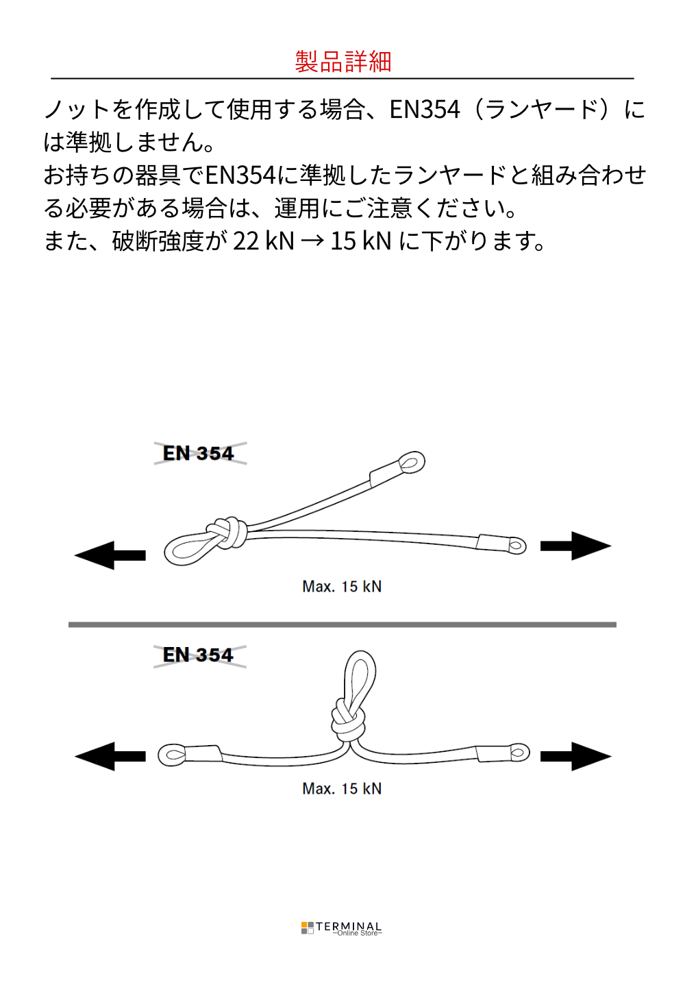 メーカー本国にて日本の墜落制止用器具の規格に準拠したテストを行い、テストをクリアした製品は【国内仕入先を通して墜落制止用器具適合品として販売】しております。シットハーネス(サドル)の場合は特定のチェストハーネスと組み合わせて適合したり、ランヤード(ショックアブソーバー付きランヤード)の場合は特定のコネクター(カラビナ)と組み合わせて適合するモデルもございます。また墜落制止用器具非適合のモデルもございます。適合状況は各商品ページに記載しております。 なお、国内正規品として流通しているもののみが墜落制止用器具に適合しております。同じ製品であっても、個人輸入や並行輸入店経由など非正規のルートで入ってきたものは規格適合を表すタグが付いておらず、非適合品となりますのでご注意ください。 |