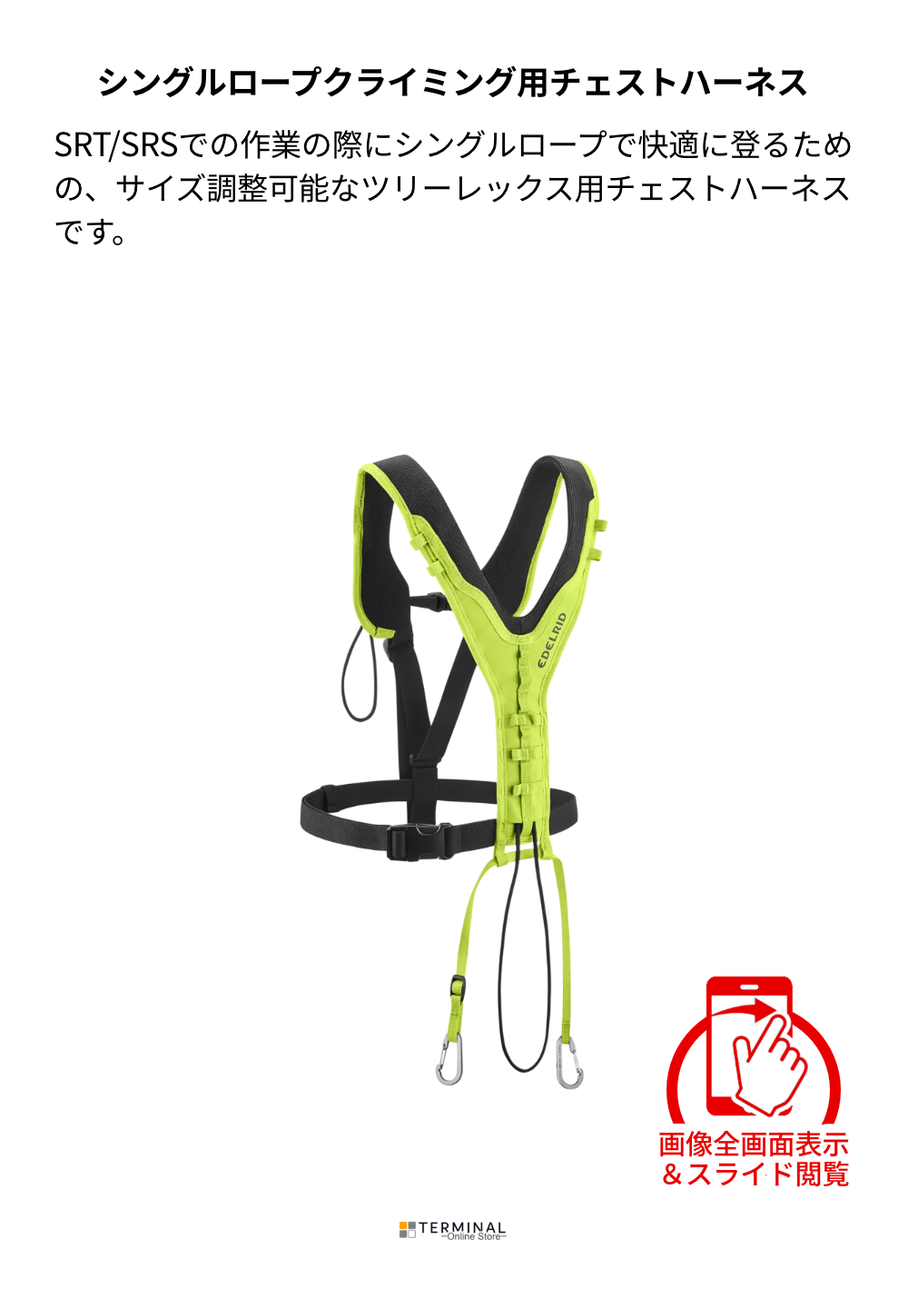SRTでの作業の際にシングルロープで快適に登るための、サイズ調整可能なツリーレッ クス用チェストハーネスです。