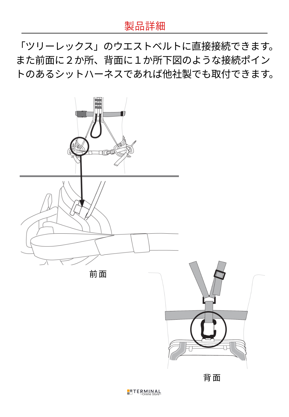- ツリーレックスのウエストベルトに直接接続することが可能。