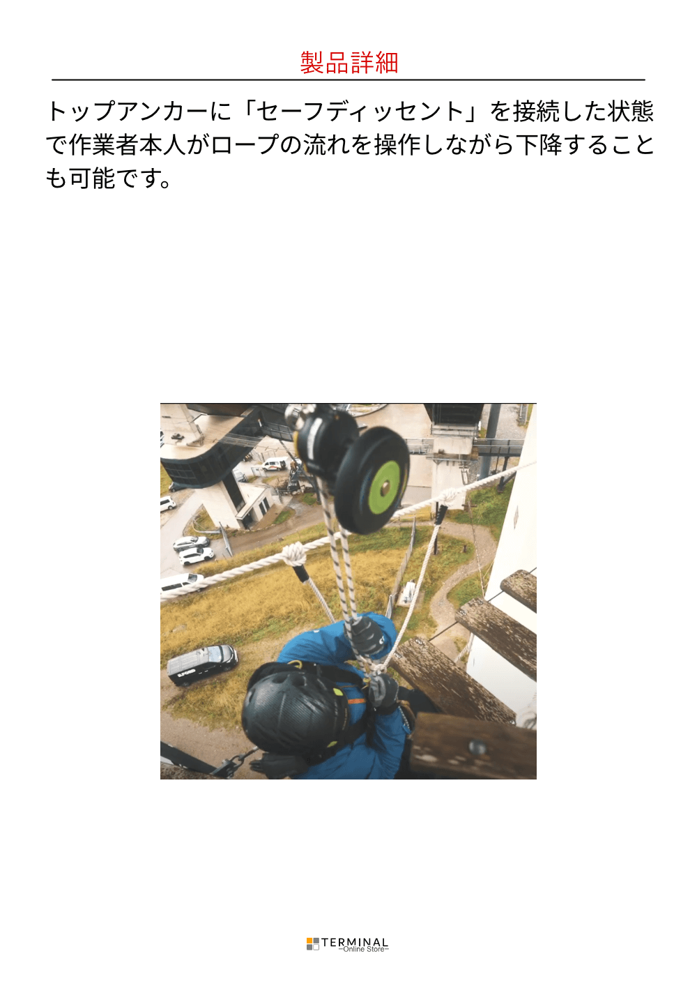 - 安全な降下のための自動バックストップ。(ラチェットシステム)