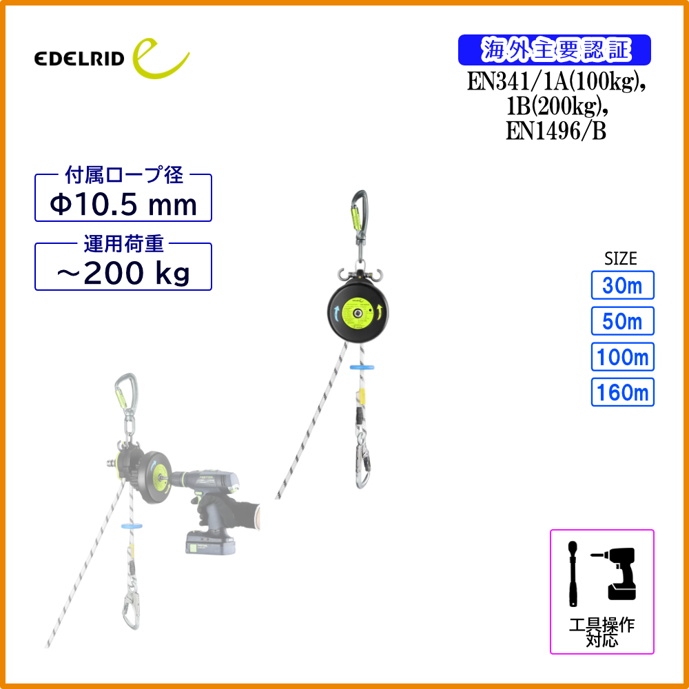 | 30m | 200kg | Φ10.5mm | EN1496/B、 |