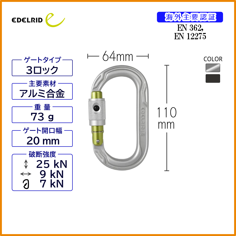 【受注発注商品】 EDELRID エーデルリッド オーバルパワー 2500 パーマロック 国内正規品 [85203.silver]