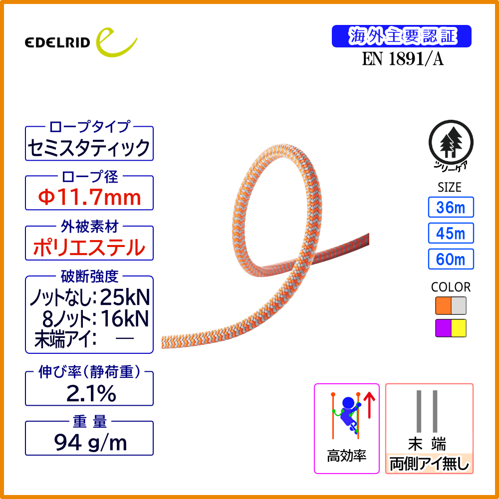 【受注発注商品】 EDELRID エーデルリッド ウッドペッカー 11.7mm 国内正規品 [83235.36m_orange]