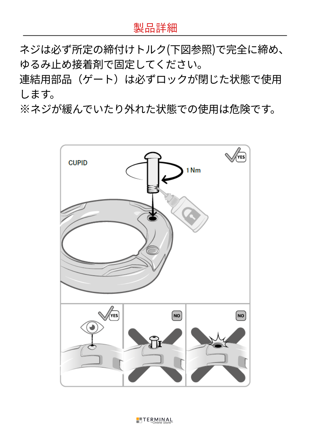 ・キューピッドスチールはゲートのロックがボタンピンとなっており、ネジが一つも無く部品をなくす心配がありません。