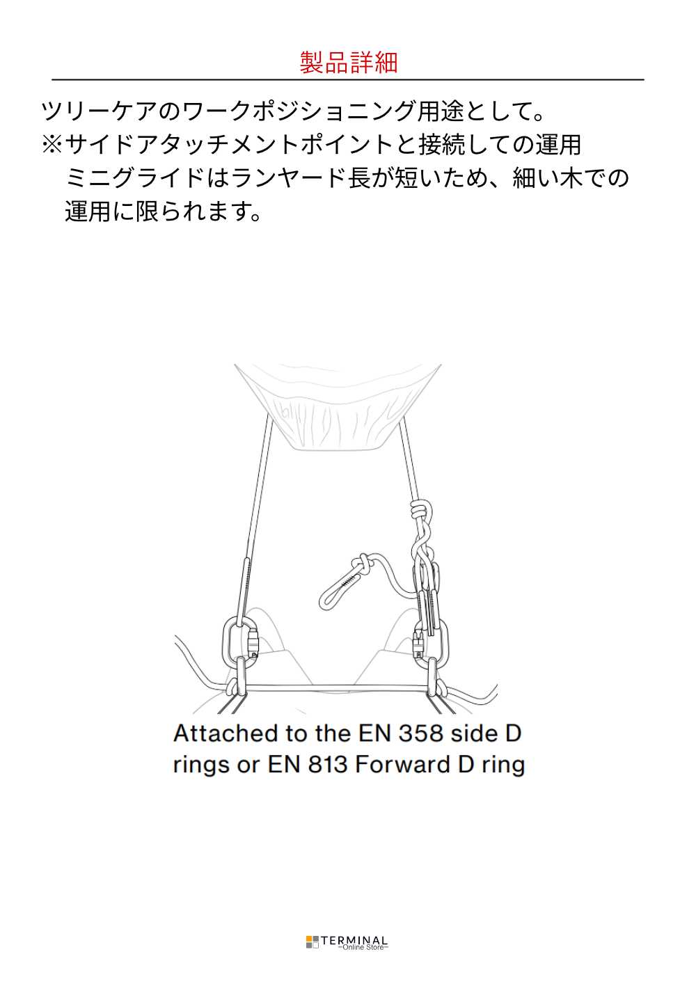 ヒップスターグライドの軽量・ショート版として設計されており、メインラインにシームレスに接続でき、ポジショニングの補助ストラップ、またはアンカーポイント/リダイレクトと多用途にカバーします。