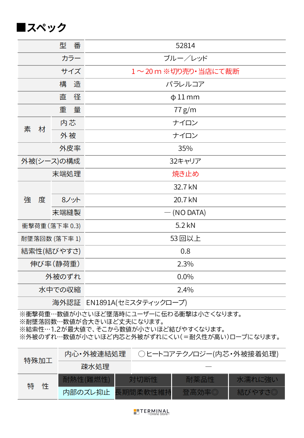 破断強度(MBS):32.7 kN