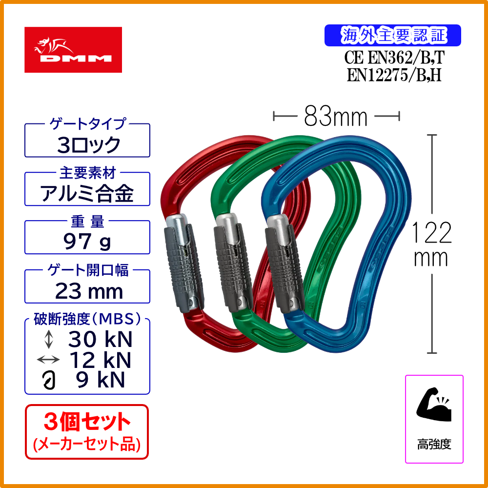 EN362:2004 B EN12275:2013 B,H,、UIAA121:2009(ANSIを除く)