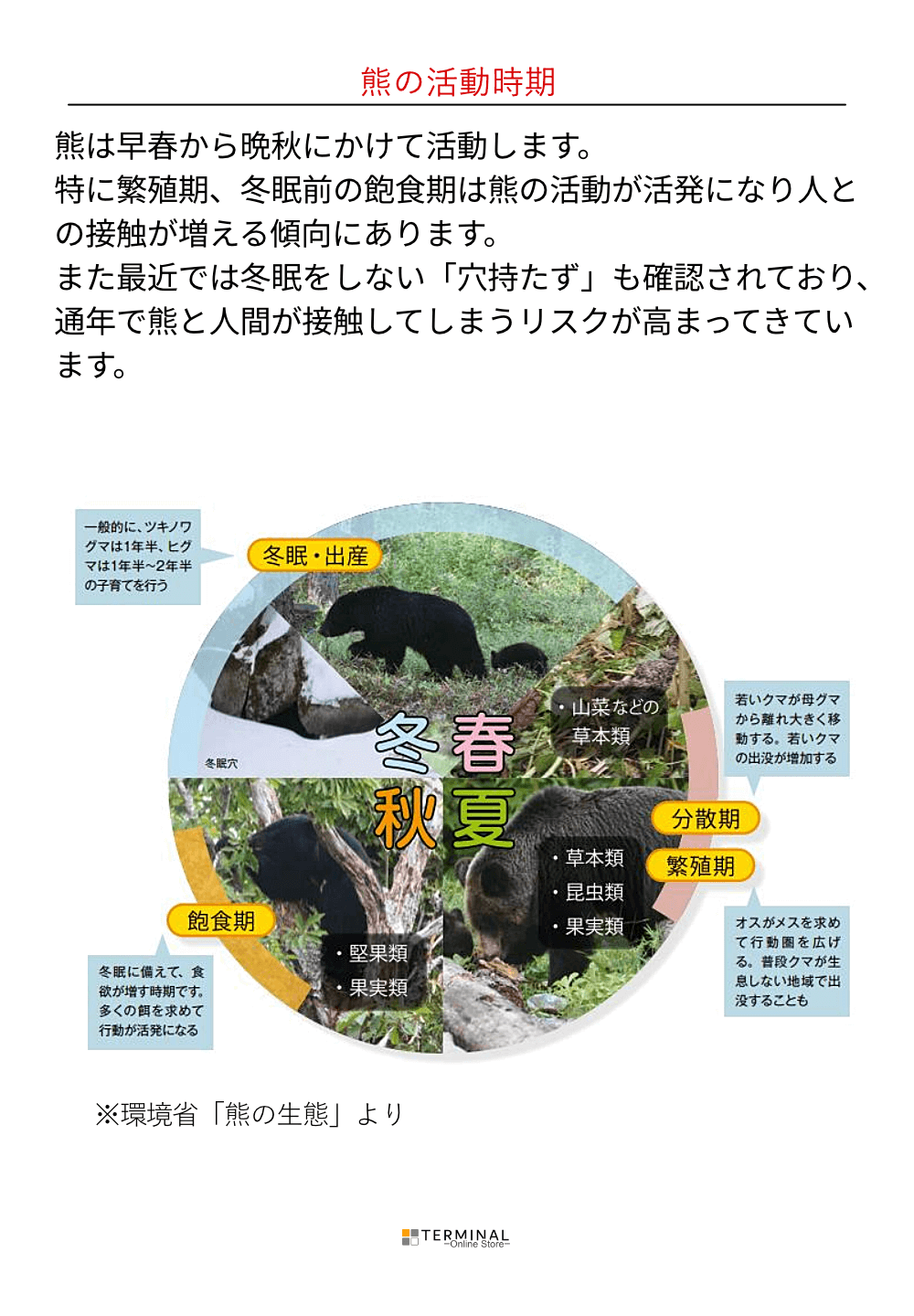 熊よけスプレーは、熊に遭遇しそうな時に、その攻撃を防ぐために使用される製品です。熊対策の必需品として、多くの方々にお使いいただいております。