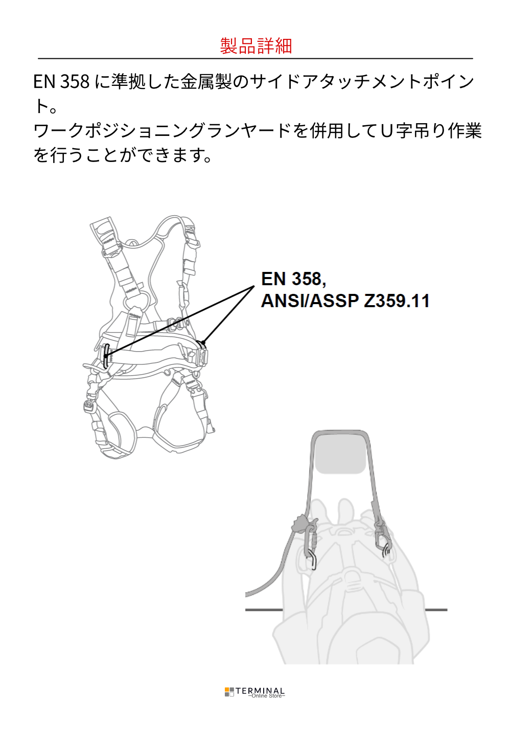 ●サイドアイレットの2つの大きなアルミニウムDリングはEN 358に準拠しており、適切なワーク