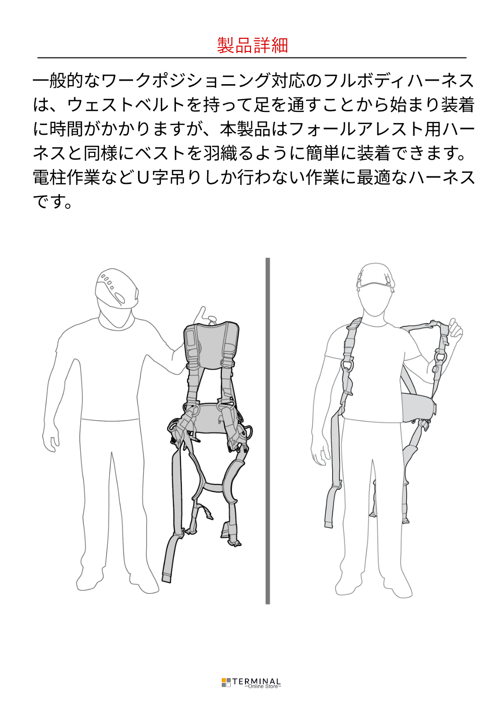 落下の危険がある場所で作業をするための快適で実用的なハーネスです。