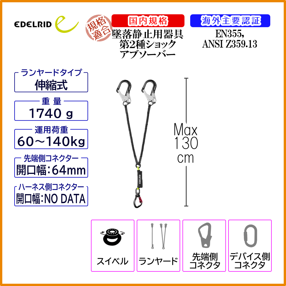 【受注発注商品】 EDELRID エーデルリッド ショックストップ Y 140 ジャイアント ANSI 国内正規品 [84018]