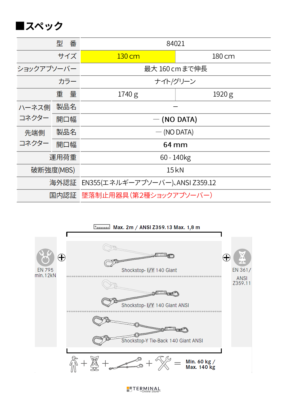 | 84021 | 130cm | 1400g | EN355、ANSIZ359.13 |