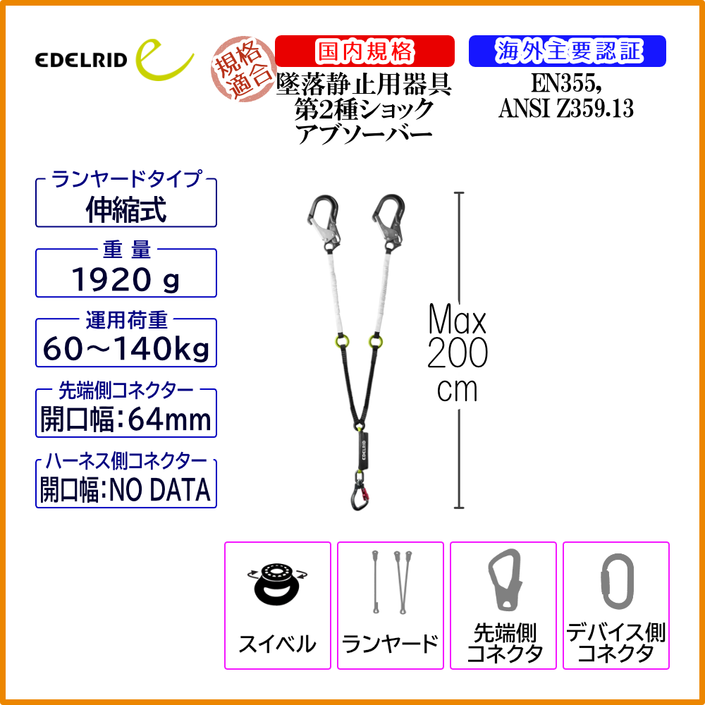 【受注発注商品】 EDELRID エーデルリッド ショックストップ Y 140 タイバック ジャイアント ANSI 国内正規品 [84018]