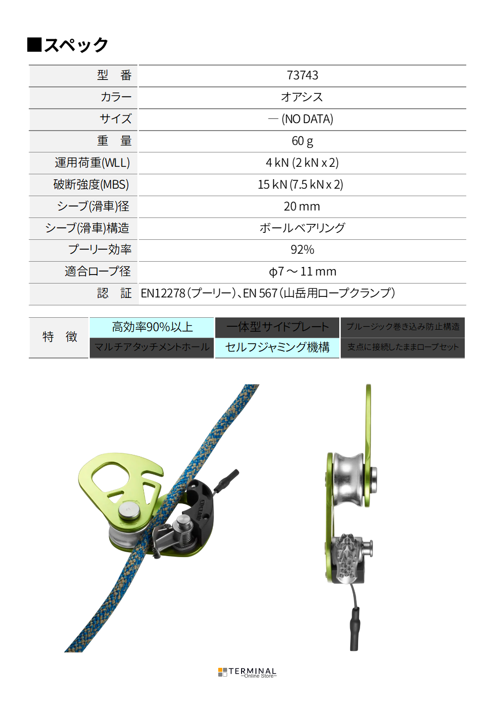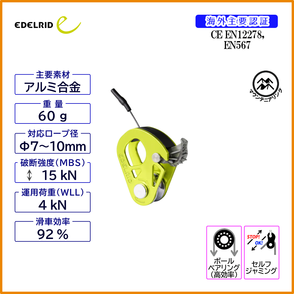 荷物の持ち上げ、クレバスの救助活動、または緊急時のアセンダーとして設計されています