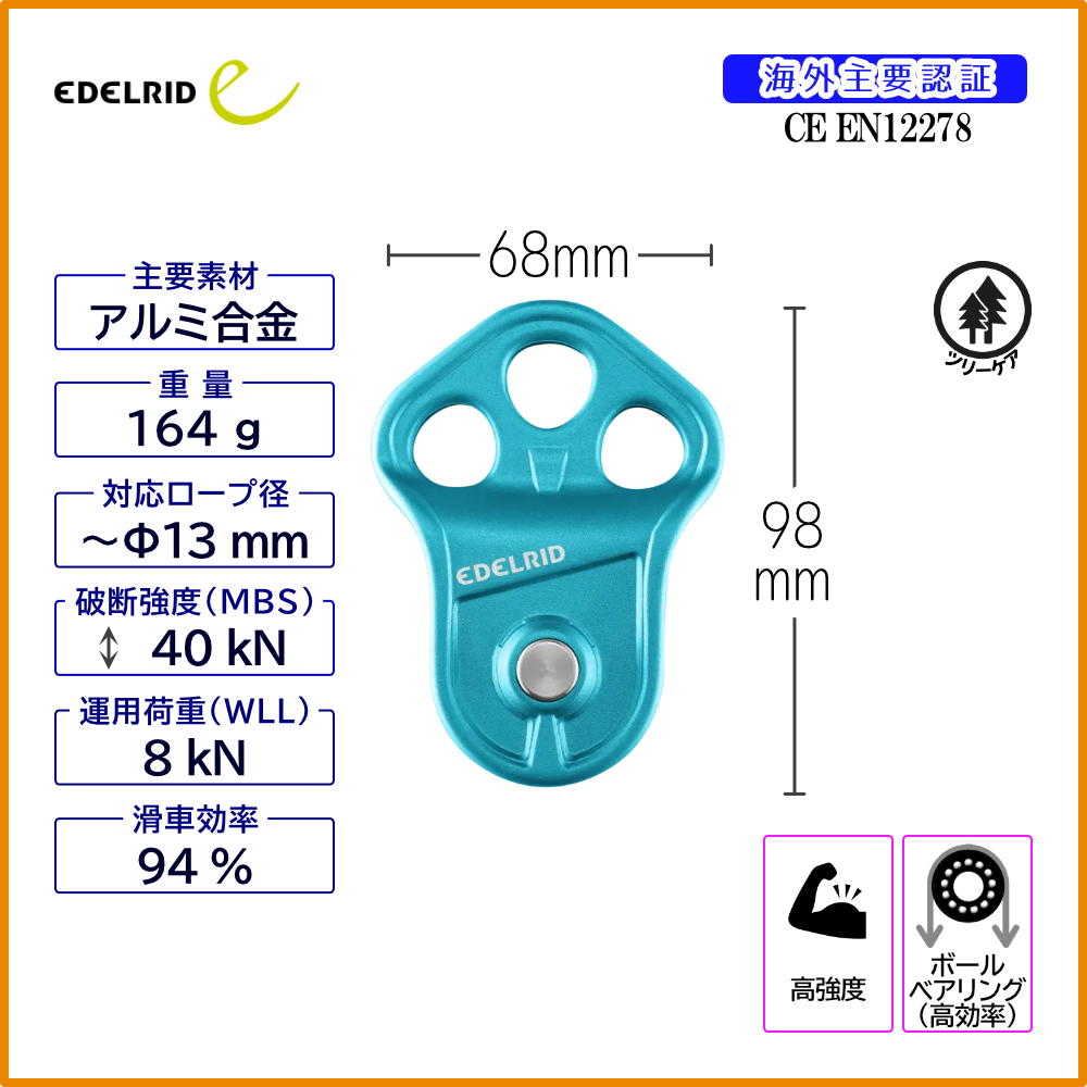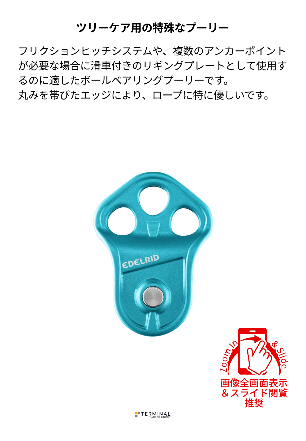 フリクションヒッチシステムや、複数のアンカーポイントが必要な場合に滑車付きのリギングプレートとして使用するのに適したボールベアリングプーリーです。