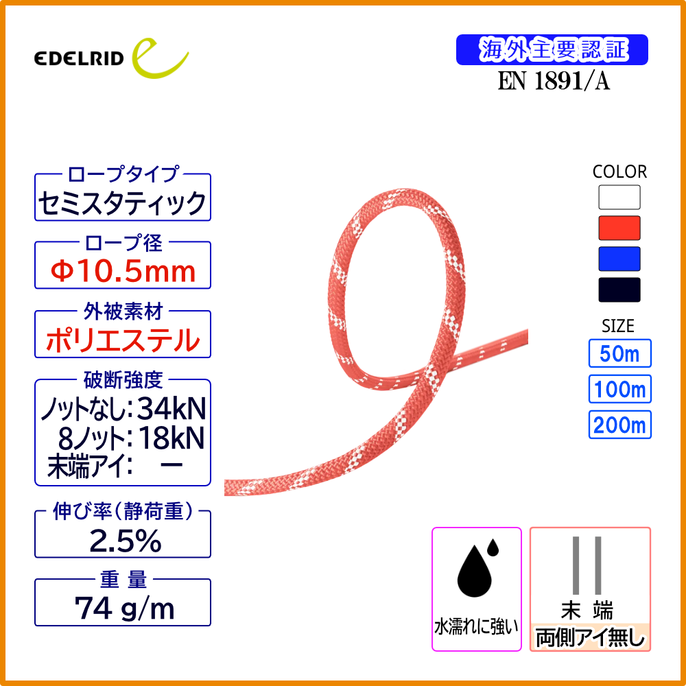 【受注発注商品】 EDELRID エーデルリッド エンデューロスタティック 10.5 mm 国内正規品 [832510500470]
