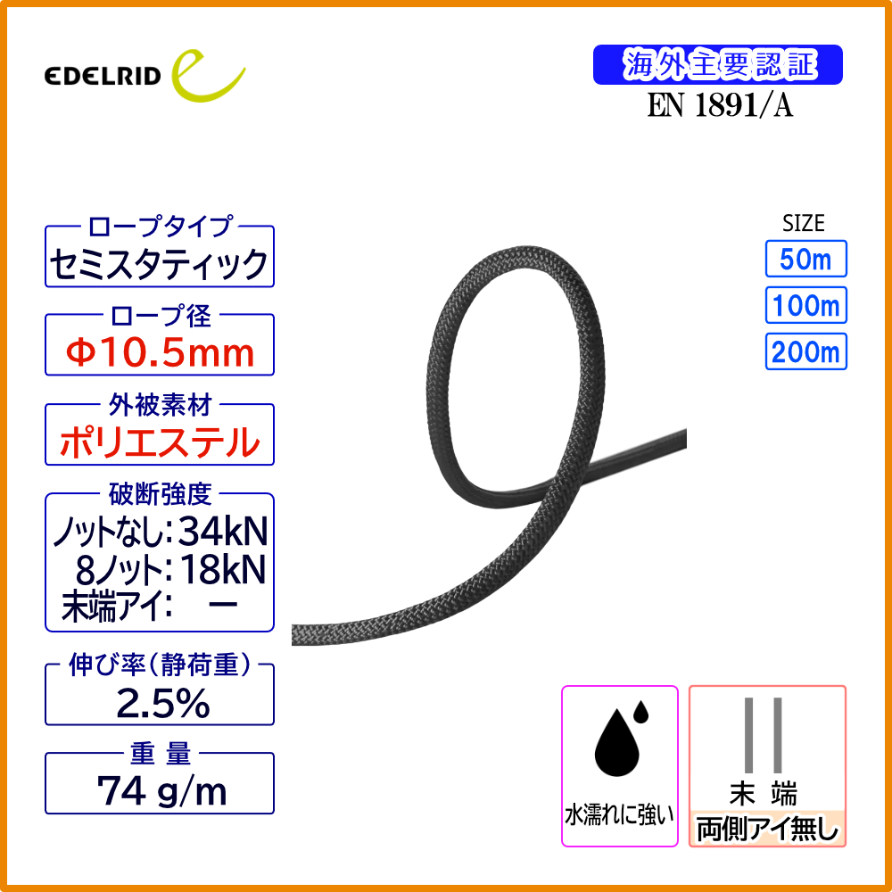 【受注発注商品】 EDELRID エーデルリッド エンデューロスタティック 10.5 mm ナイト(ブラック系) 国内正規品 [832510500170]
