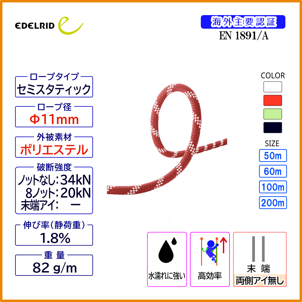 【受注発注商品】 EDELRID エーデルリッド スタティック ロー ストレッチ 11 mm 国内正規品 [832130500470]