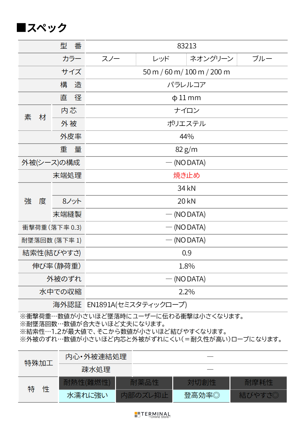 - 最小破断強度:34 kN