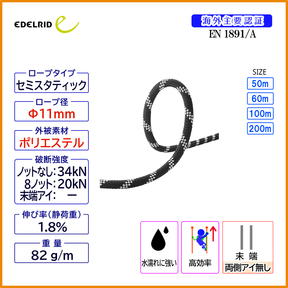 【受注発注商品】 EDELRID エーデルリッド スタティック ロー ストレッチ 11 mmナイト(ブラック系) 国内正規品 [832130500170]