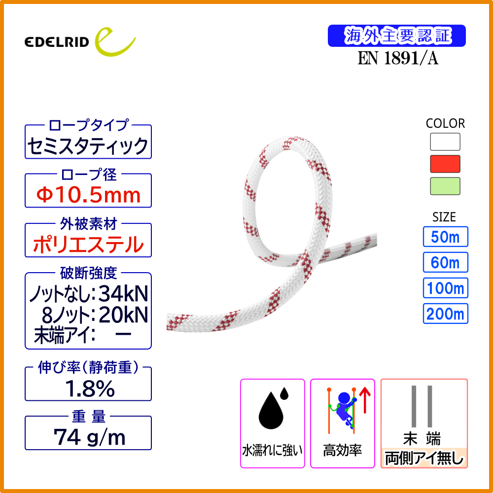 【受注発注商品】 EDELRID エーデルリッド スタティック ロー ストレッチ 10.5 mm 国内正規品 [832110500470]
