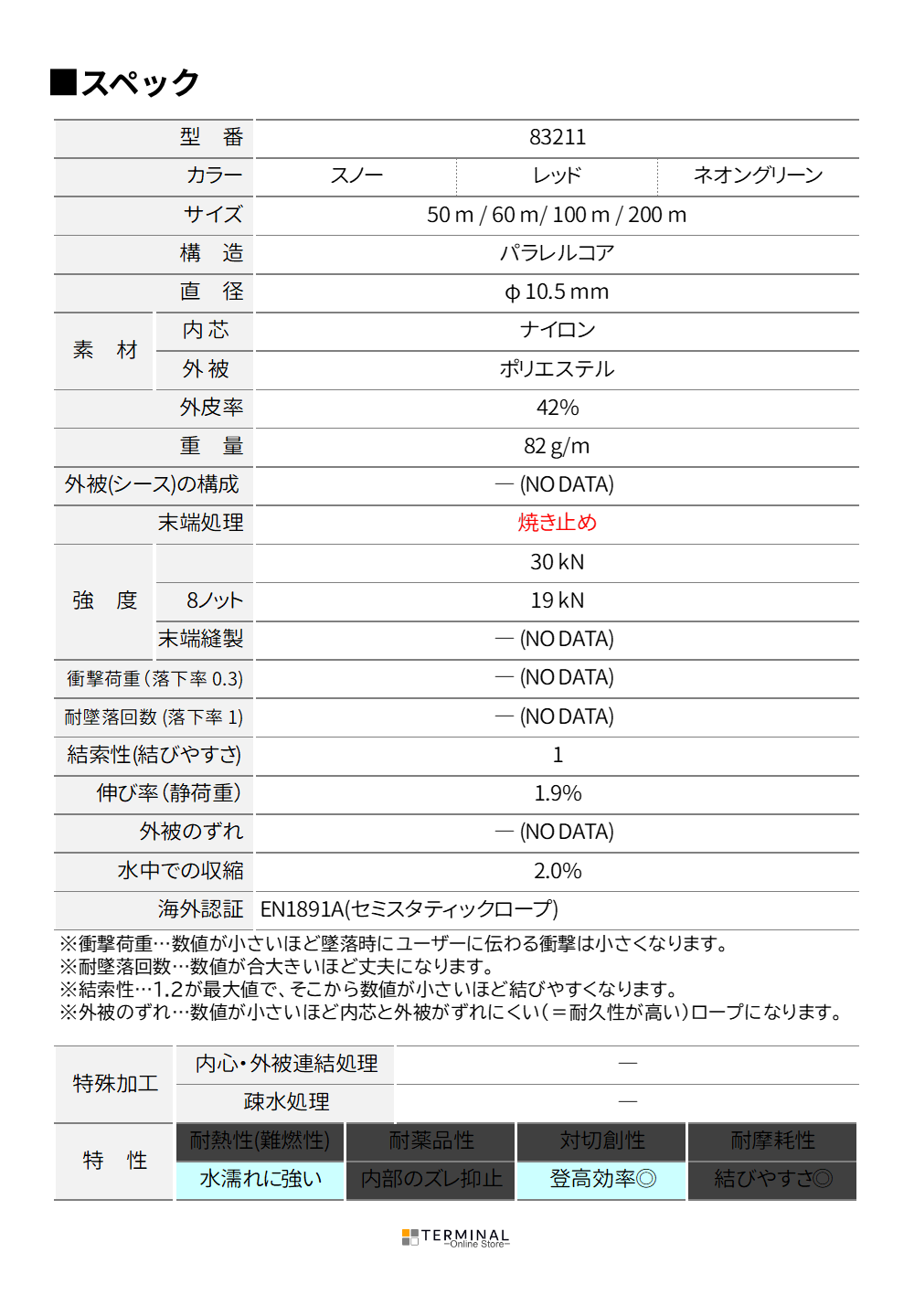 伸び率が最小のため、ロープを楽に登ることができ高所での作業に最適です。