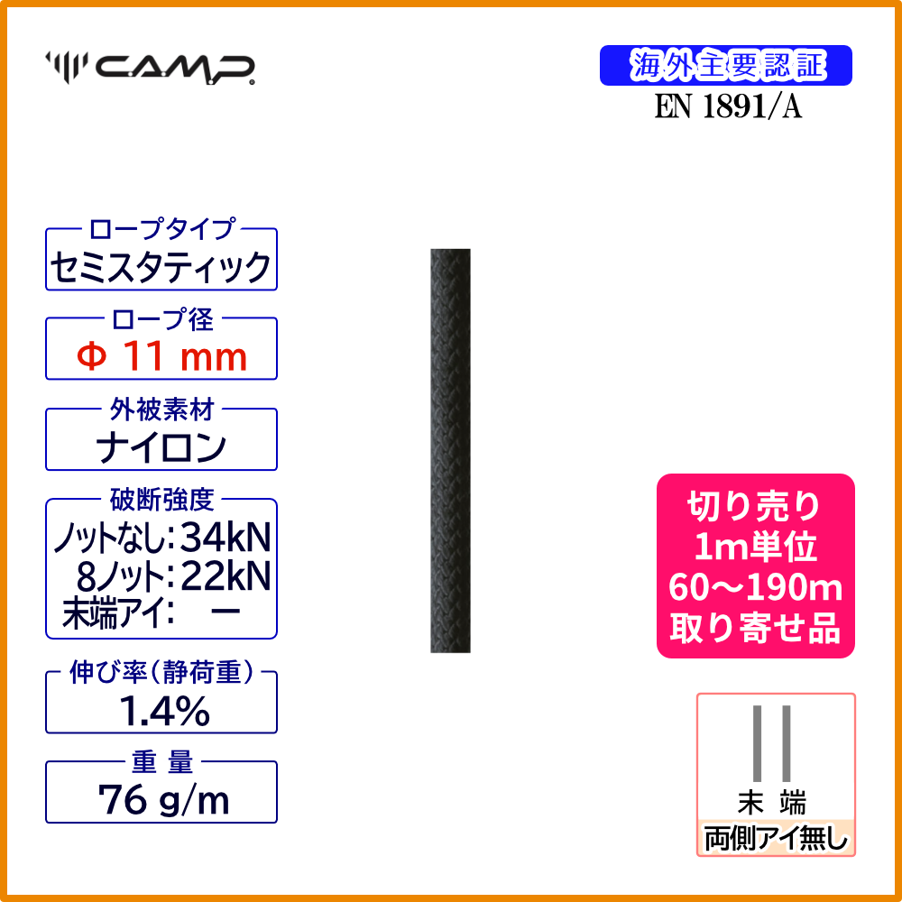 【取り寄せ】 C.A.M.P. (Camp Safety) カンプ イリジウム 11 mm ブラック 特注ロープ [60〜190m / 10m単位] 国内正規品 [5281164]
