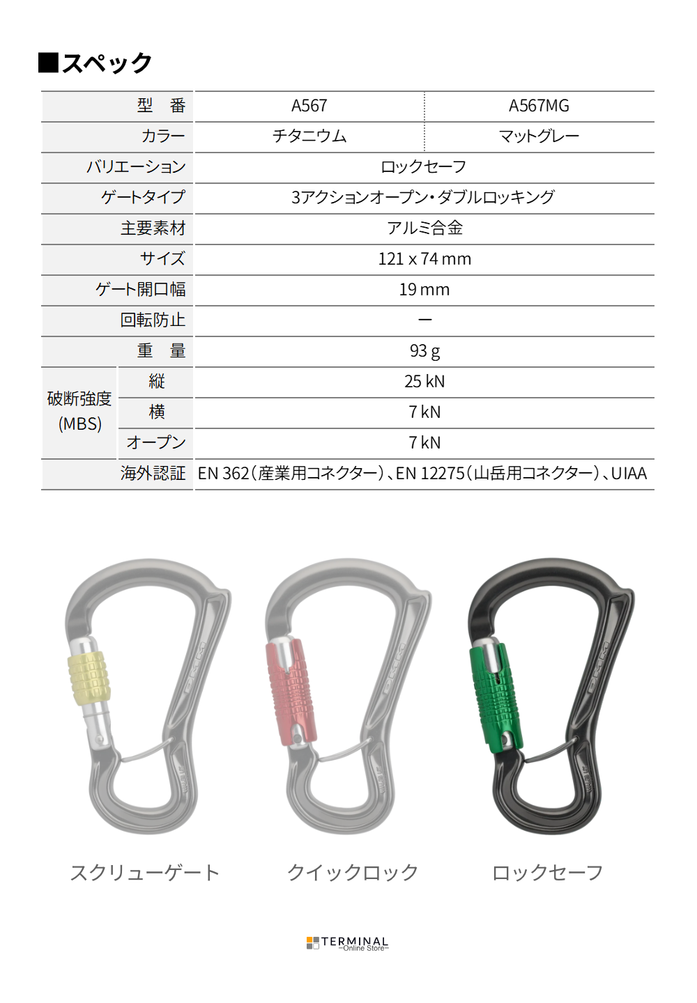 ロックセーフ | 93 g | 19 mm | 25 kN | 7 kN | 7 kN |