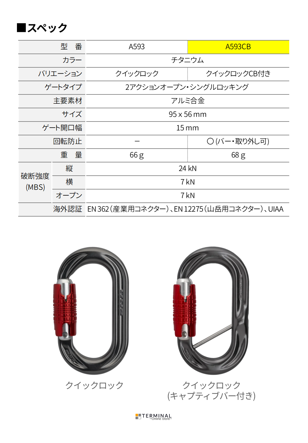 小型化しながらもメジャー アクシス24kNの強度を誇 るO型カラビナです。各種 プーリーとの相性も抜群で す。