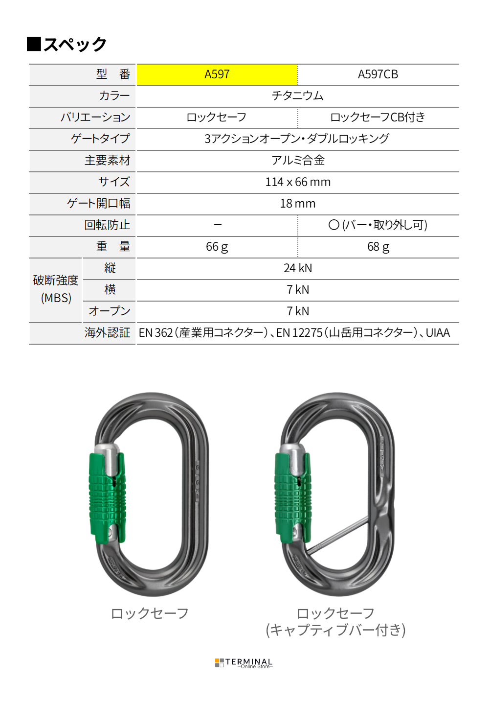 小型化しながらもメジャー アクシス24kNの強度を誇るO型カラビナです。各種 プーリーとの相性も抜群で す。