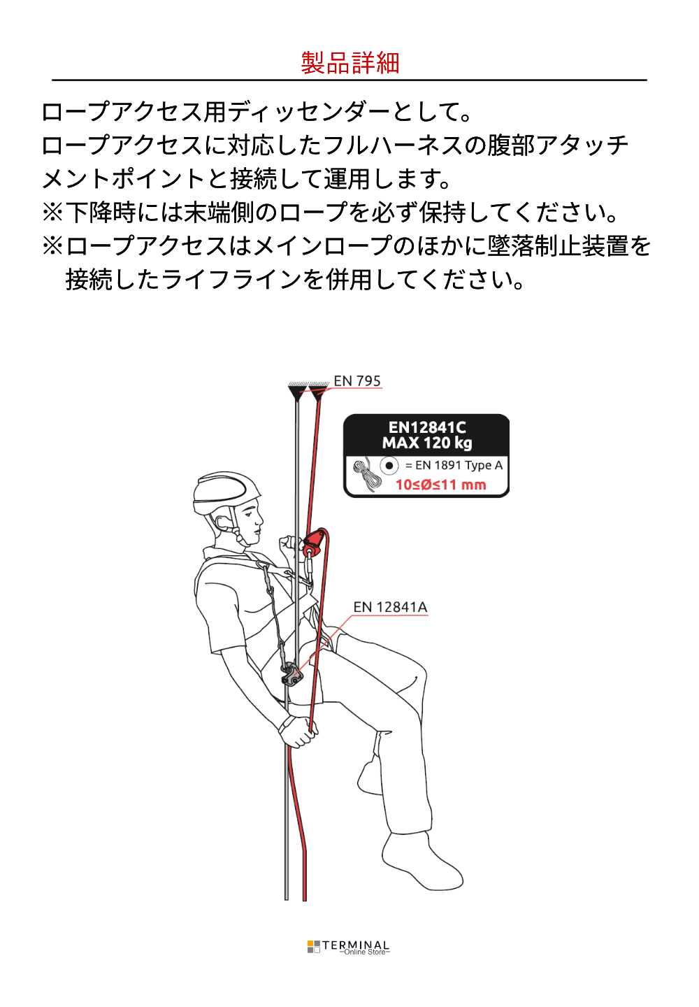 認証:CE N12841/C、EN15151/1、EN341/2A、EAC