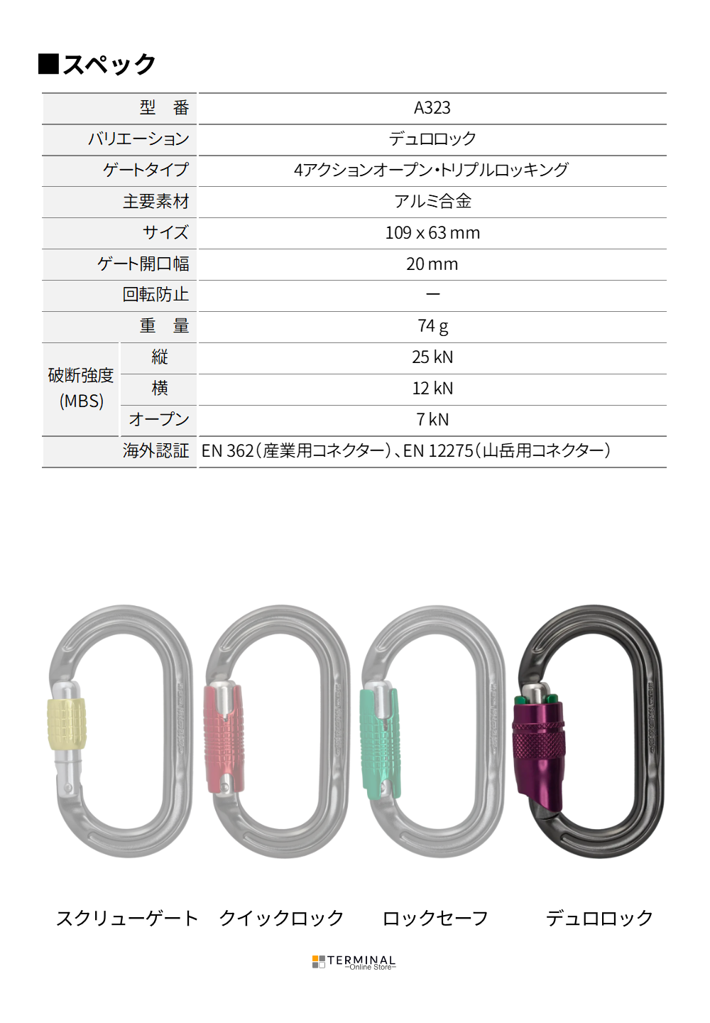 認証:EN362:2004 B EN12275:2013 B UIAA121:2009