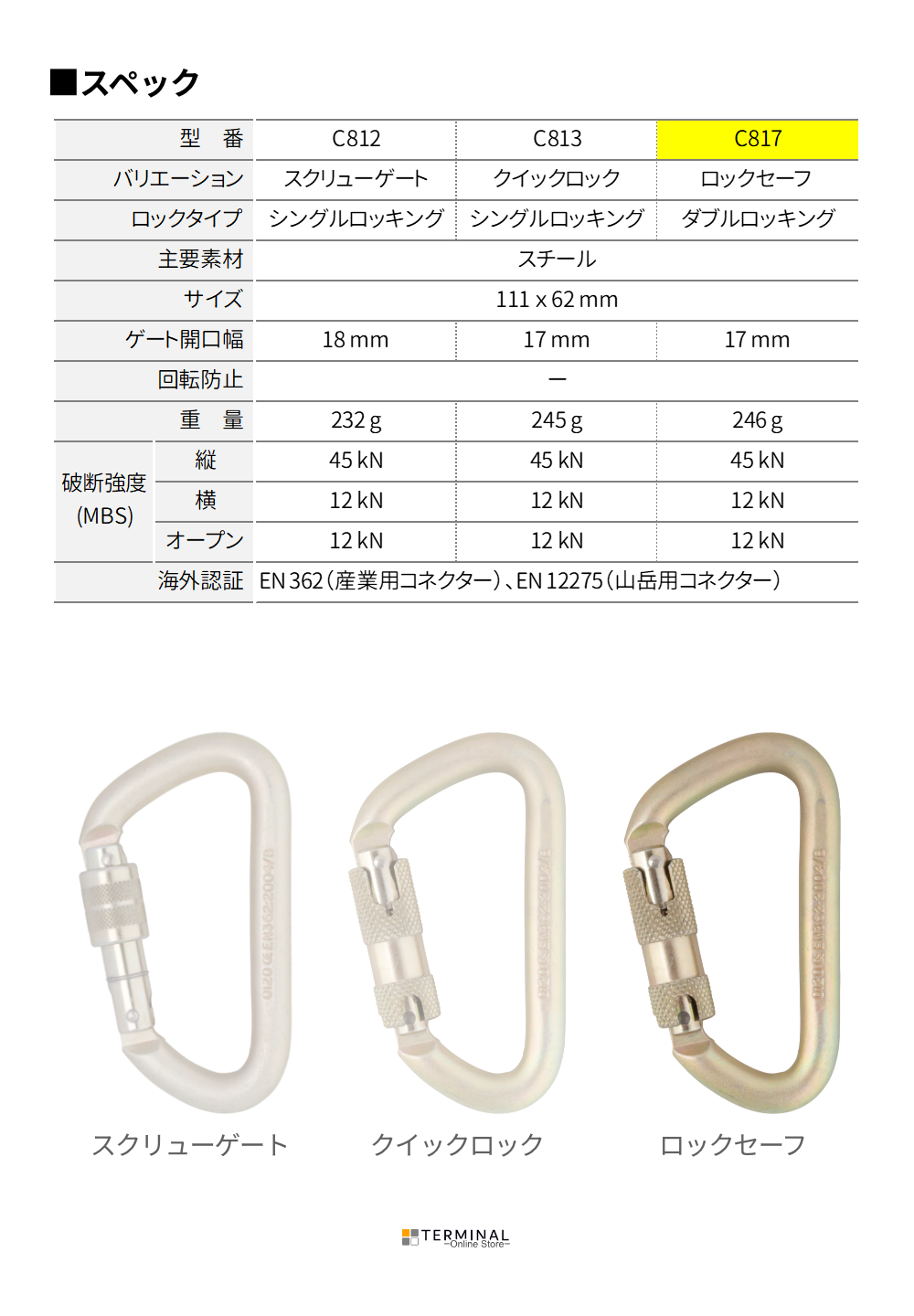 ロックセーフ | 248 g | 17 mm | 45 kN | 12 kN | 12 kN |