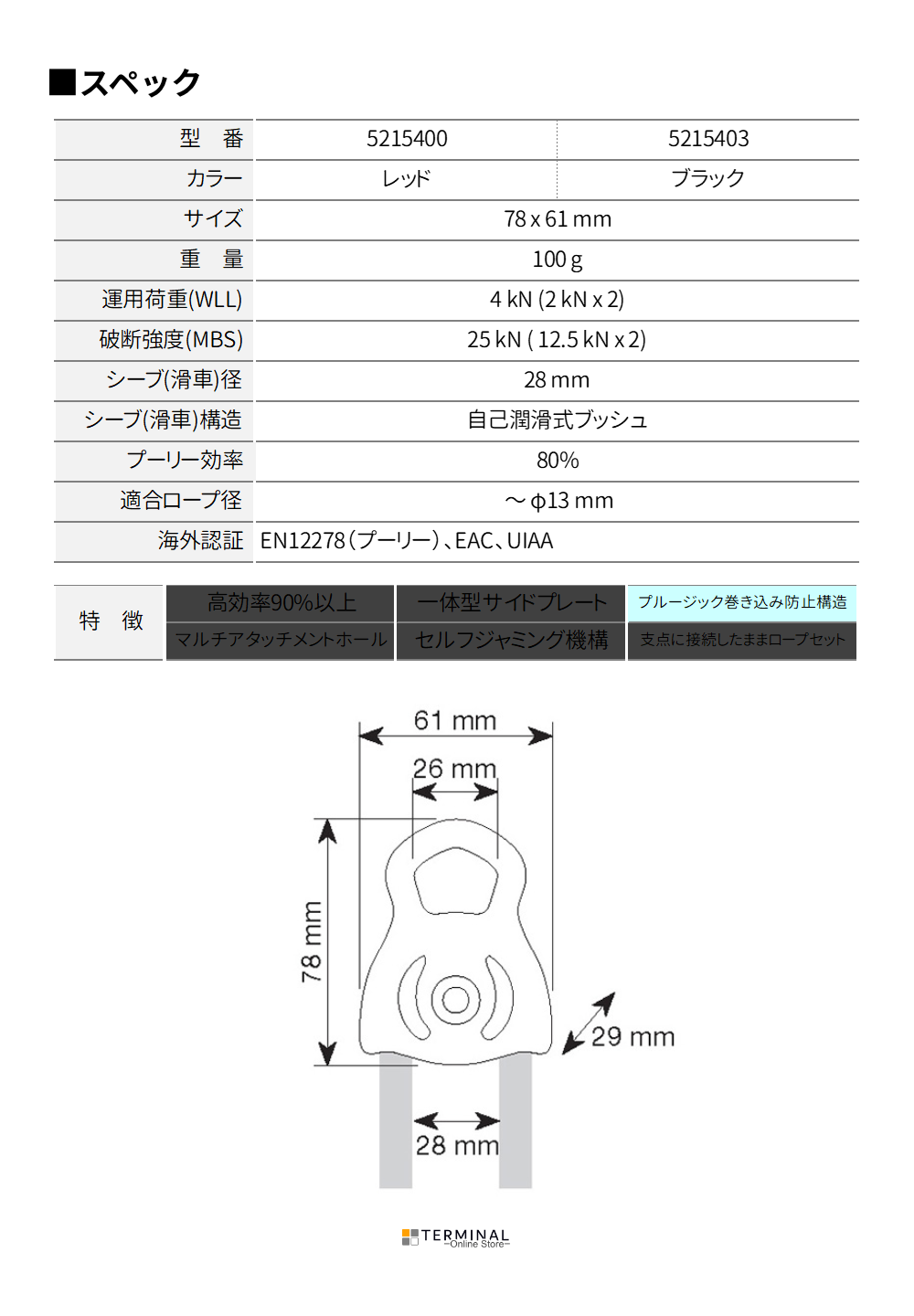 対応ロープ:〜Φ13mm