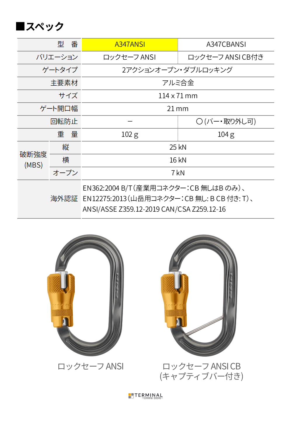 ロックセーフ ANSI | 102 g | 18 mm | 25 kN | 16 kN | 7 kN |