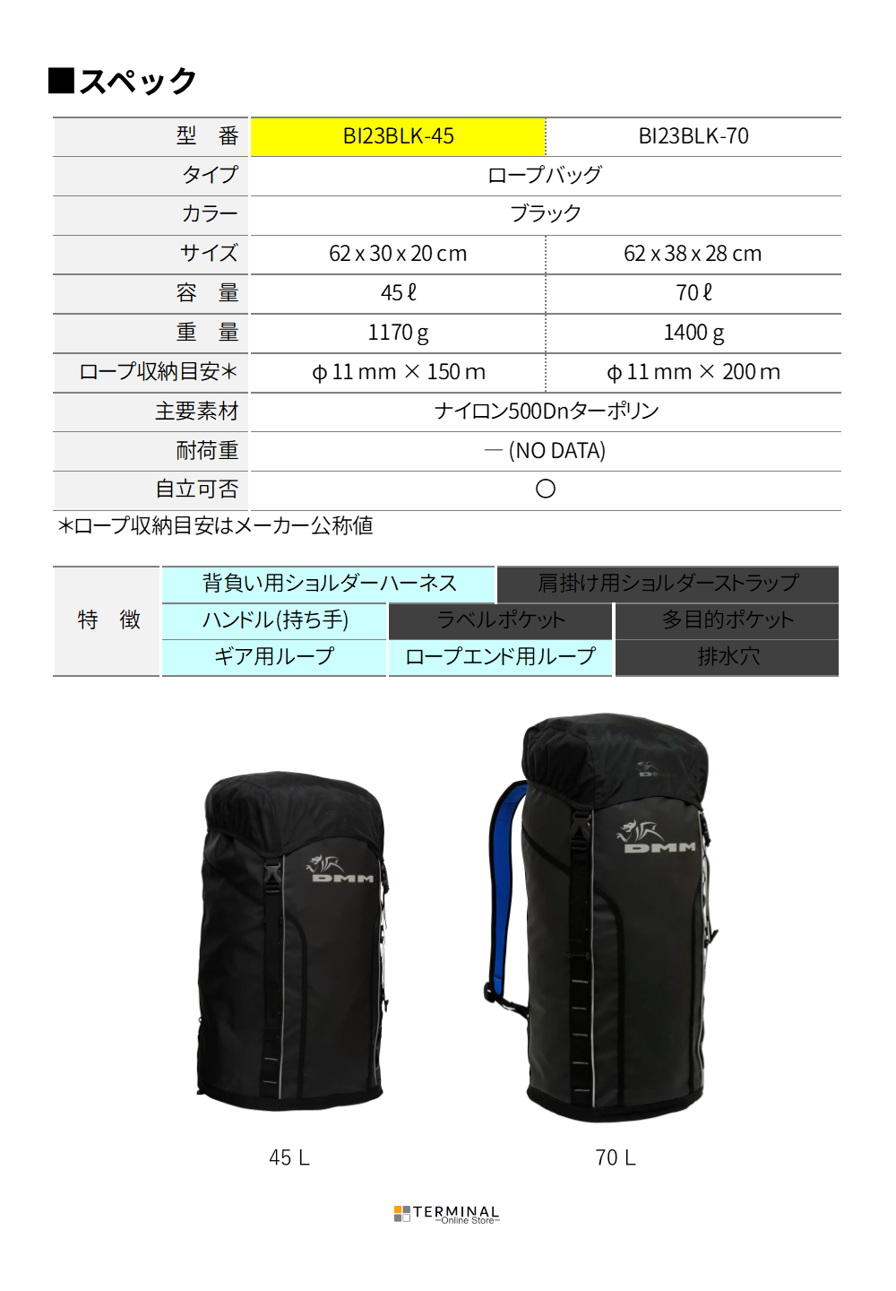 【受注発注商品】 DMM ディーエムエム ポーターロープバッグ 45L 国内正規品 [BI23BLK-45]