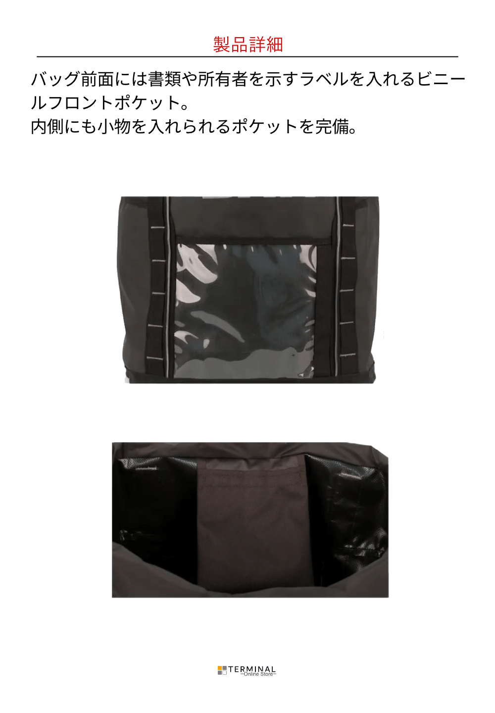 ・書類用のビニール製フロントポケット