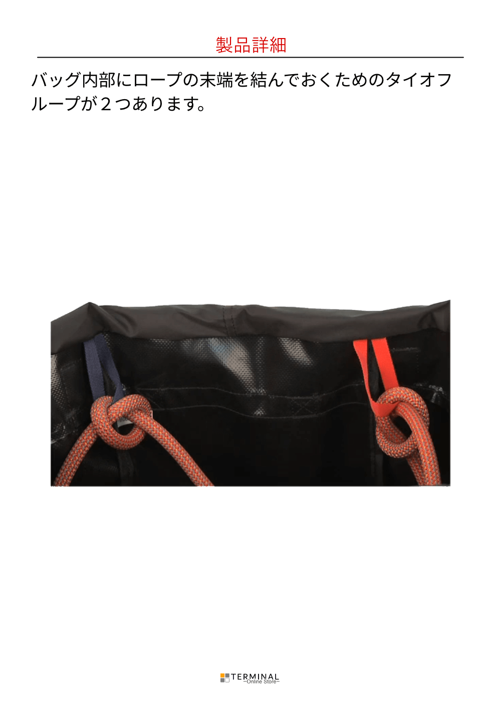 ・ロープの端を結ぶための内側のタイオフループ