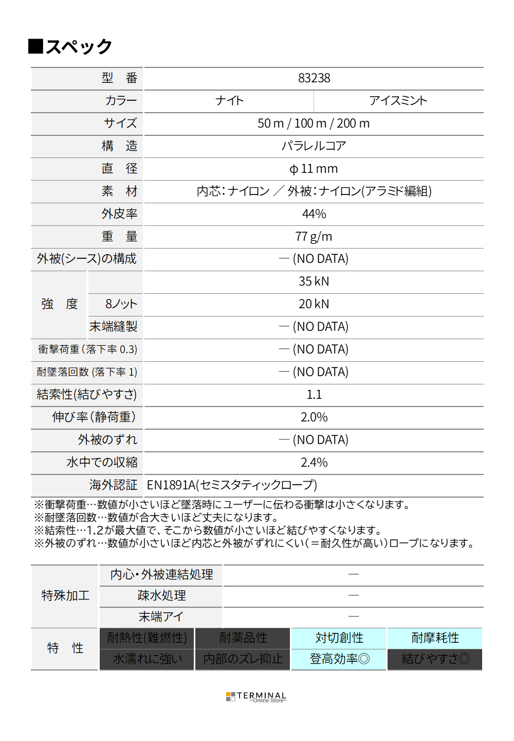 | エイトノットでの耐荷重(kN) | 20 |