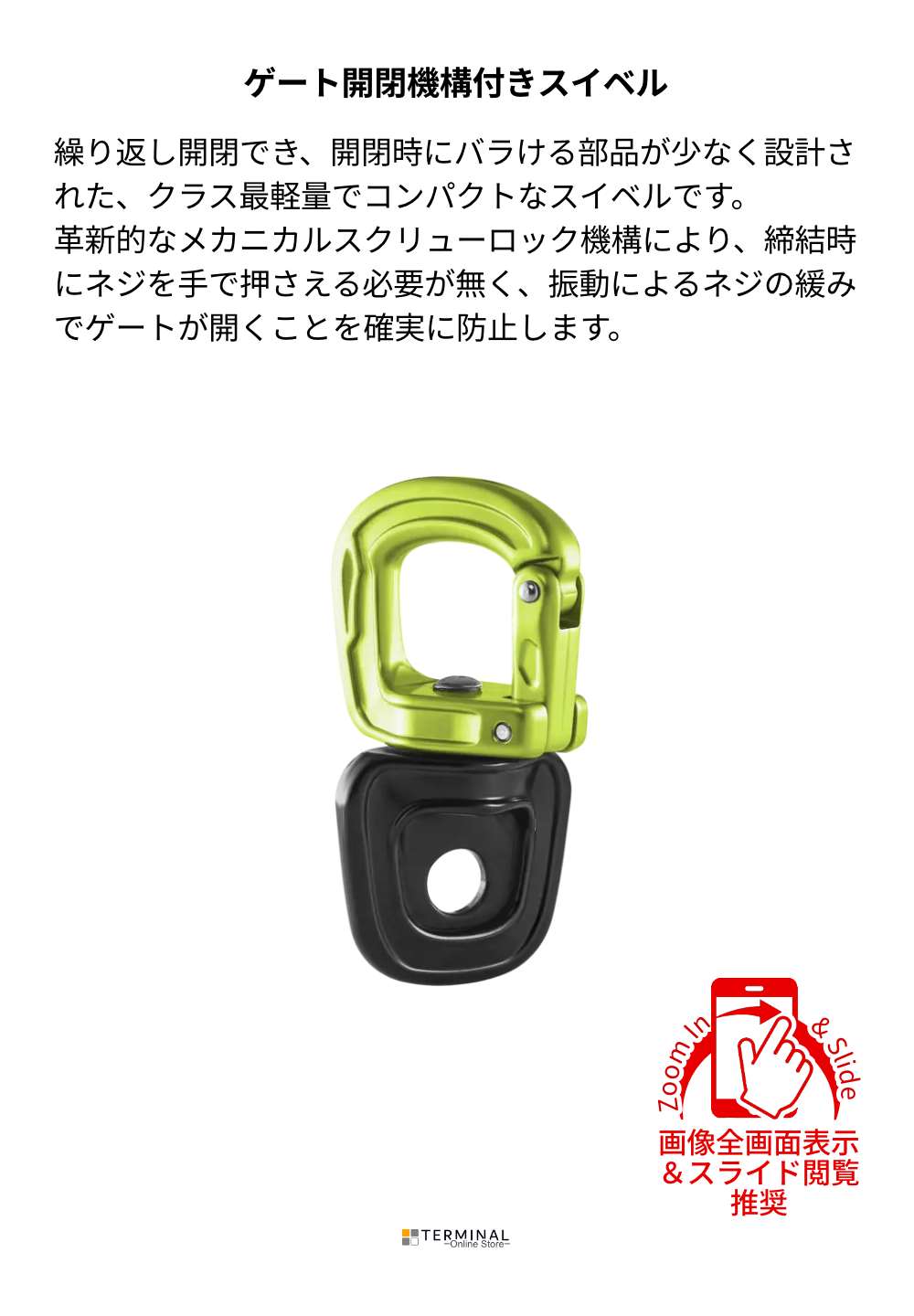 繰り返し開閉でき、開閉時にバラける部品が少なく設計された、クラス最軽量でコンパクトなスイベルです。